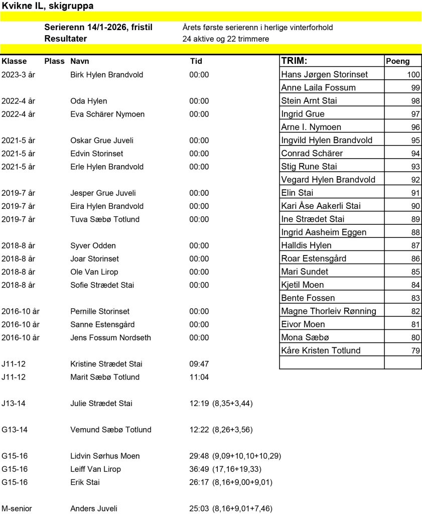 Resultater fra serierenn 14. januar 2026
